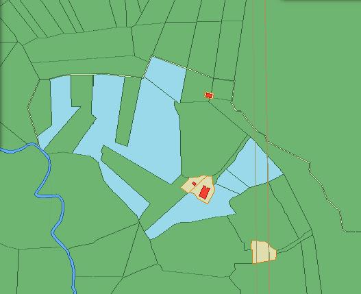 Hieronder is in lichtblauw aangegeven welke percelen aan Janna Jansen weduwe van Derk Toetert toebehoorden.